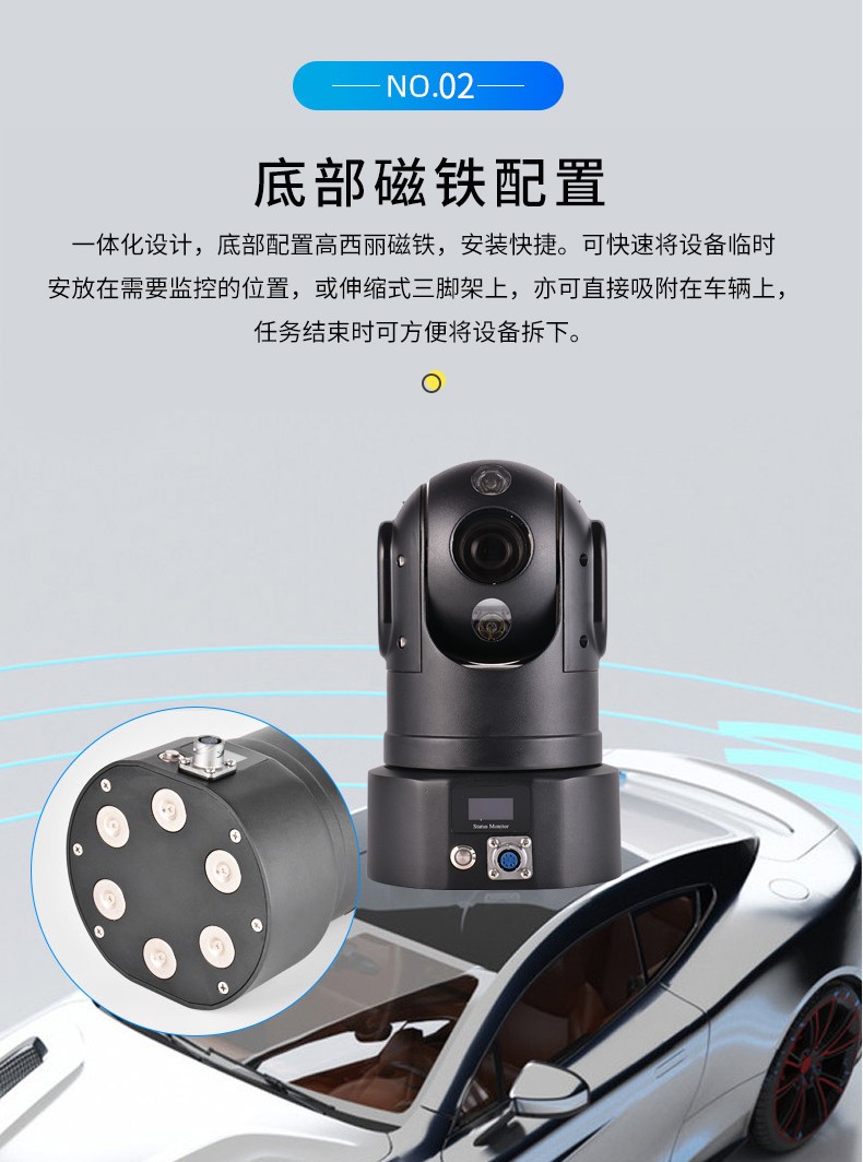 立即咨詢友聯(lián)哨兵4G高清布控球是一款功能全面、攜帶方便的無線視頻4G應急布控球產(chǎn)品,超高設(shè)備集成度,內(nèi)置高性能鋰電池組,具備防水防震的特性,可滿足臨時布控和快速安裝的特殊要求。執(zhí)行任務時可快速將設(shè)備臨時安放在需要監(jiān)控的位置,或伸縮式三腳架上,也可直接吸附在車輛上,任務結(jié)束時可方便將設(shè)備拆下。